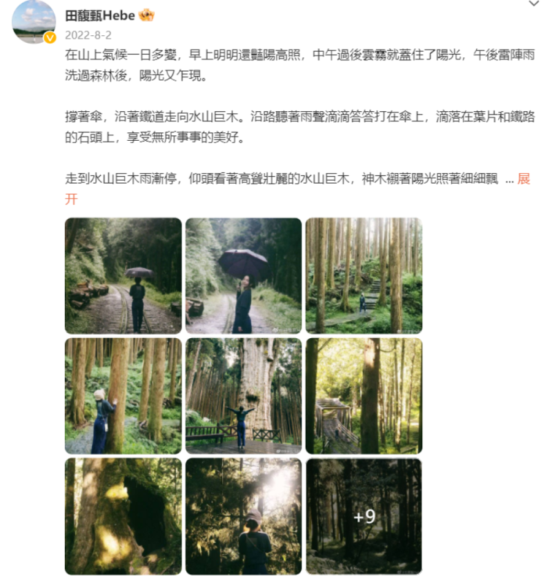 当时她在大陆的网站上分享的是自己去旅游的岁月静好的照片,在ins上却分享了一则“打肿脸”的阴阳怪气的动态,将自己的立场彻底暴露了出来。