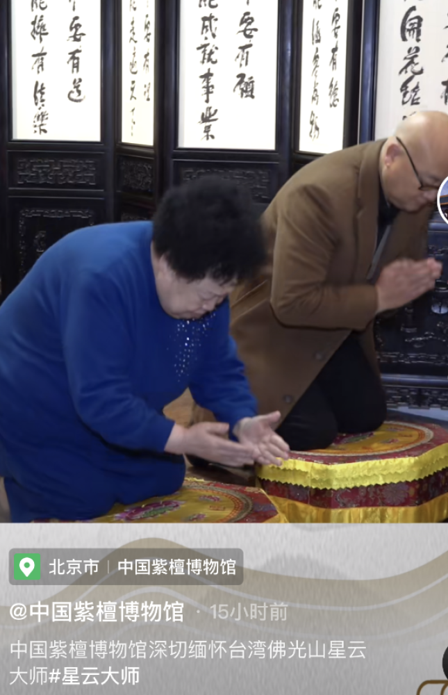 星云大师的辞世,让不少人感到悲痛与不舍,很多圈内人士纷纷发文以表悼念,其中迟重瑞夫妇更是在中国紫檀博物馆为星云大师举办了一场隆重肃穆的追悼仪式。