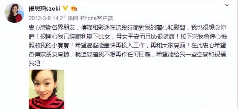 杨思琦的感情方面就比较复杂了,上一次看到她的私生活动态,是她官宣诞下了二胎。