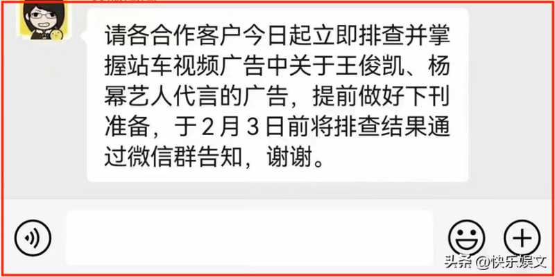 从这一张截图中我们可以看到,有关方面要开始检查杨幂与王俊凯的所有广告,疑似要对他们两人的广告采取下架的行动。