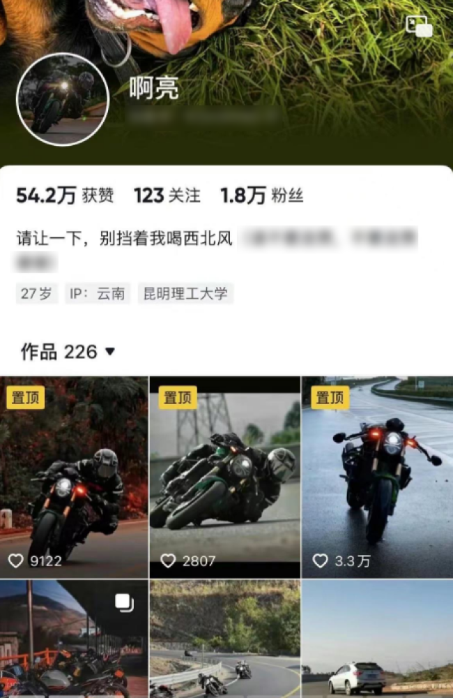 白发人送黑发人的悲痛只有亲身经历者才能真切体会,目前阿亮的家人已经将阿亮生前的账号动态全部清空,这个账号曾经记录了阿亮每次出车帅气潇洒的身影,共有226个作品,孰能想到,对摩托车如此钟爱的阿亮这一去便再也不会回来,父母看到儿子的这些骑行视频,内心该有多么悲伤。