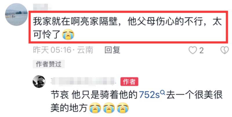 而这位车手与阿亮生前还是私交不错的队友,想来听闻好友离世的噩耗,他本人内心也是万分懊悔与悲痛,为此其他队友还特意上网叮嘱网友,希望大家不要再传播事故发生现场的视频,以免给幸免于难的队友造成过重的心理负担。