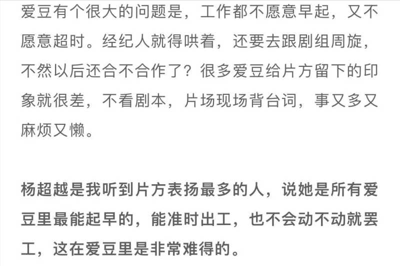 《娱理》访问的经纪人就直言,很多爱豆给合作方留下非常差的印象,觉得他们懒惰,既不愿意早起,又不能加班,不看剧本,不背台词……时间久了,合作方都不乐意跟爱豆合作。