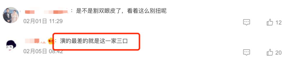 还有观众忍不住加一句:演的最差的就是这一家三口。