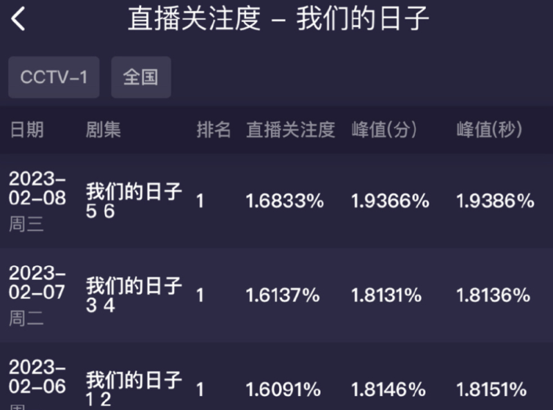 该剧已经播出几天了,收视率稳步上升,峰值有望破2%,但跟《狂飙》的收视3%相比,还有不小的差距。