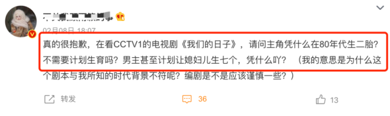 《我们的日子》在剧情上,存在一些不合理之处,比如80年代,女主角就生二胎,还扬言要生7个。