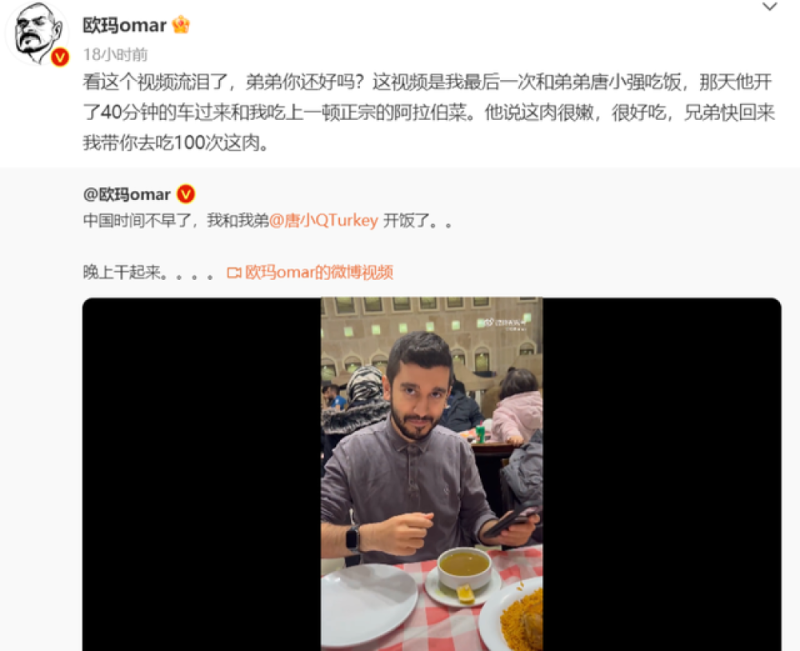 从好兄弟欧玛的动态来看,唐小强最后一次公开露面是去年的12月5日,当时兄弟俩一起相聚用餐,欧玛还特意拍摄视频予以留念,没想到这却成为唐小强最后的影像记忆。