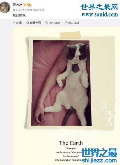 范冰冰李晨床上照片可以看出,活生生人不如喵啊。这小两口一刻不秀恩爱就受不了。7月21日凌晨2点,范冰冰在微博晒出一张图片,并附文“夏日夜晚”。照片中,一个男人抱着一只喵咪正在粉红床上睡觉,看那粗壮的手臂,正是大黑牛李晨无疑。