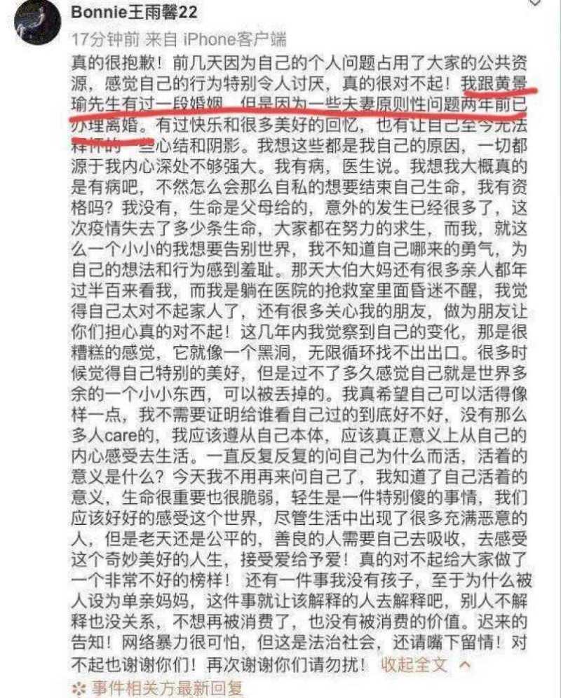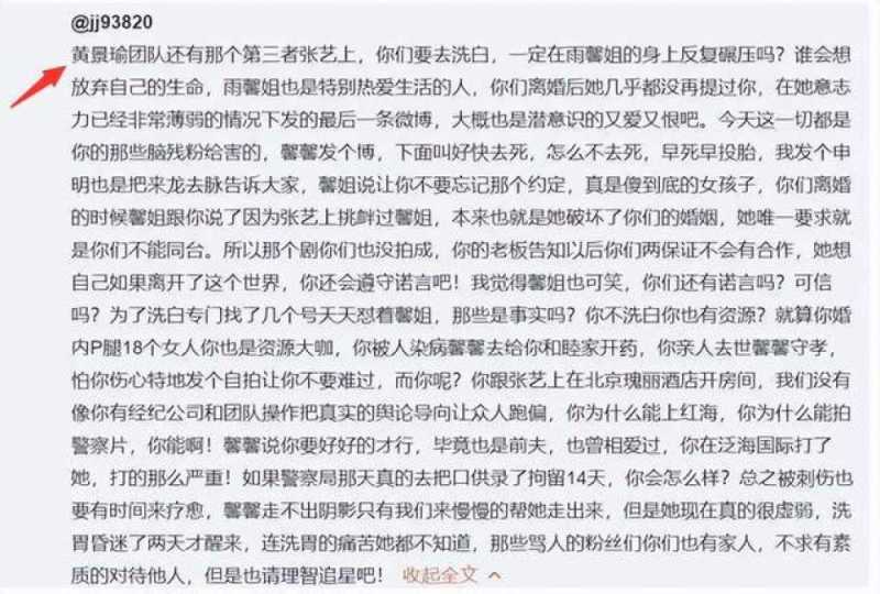 回顾下当年王雨馨和助理发布的动态,两人分手时王雨馨曾有过轻生的举动,当时被助理救下,而后助理发文怒斥黄景瑜婚内出轨,矛头对准另一位艺人张艺上。