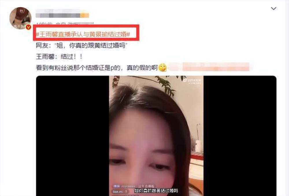 谁在说谎?王雨馨直播承认与黄景瑜结过婚,此前男方曾否认已婚家暴