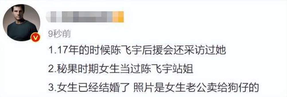 鉴于女方并非知名网红,想来网友们心中最大的疑问是陈飞宇与她究竟是相识的,据悉,这位小网红曾是陈飞宇之前作品《秘果》时期的站姐,后来也正式出道做艺人,因为是陈飞宇的站姐,想来私下两人关系也随之熟稔起来。在2017年,陈飞宇的后援会曾采访过她,算下来她喜欢陈飞宇已经6年之久。