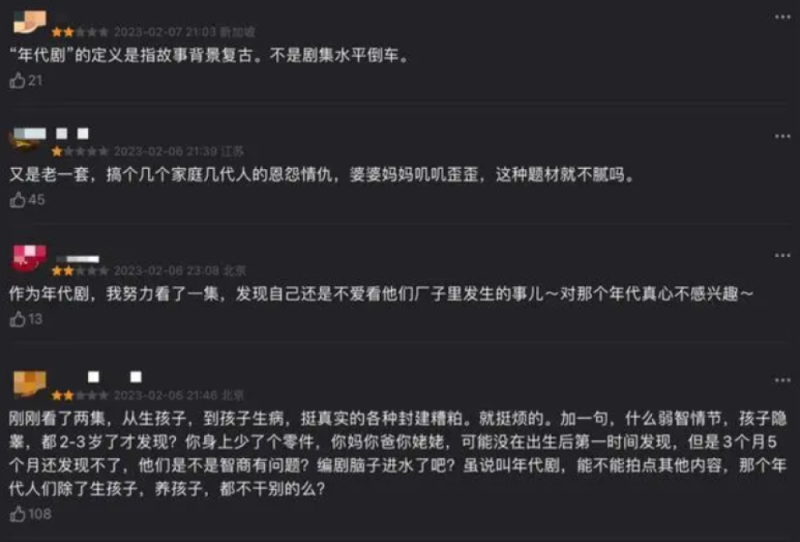 其实该剧被吐槽最多的就是剧情悬浮,没有说服力,导致一星二星的差评满天飞。