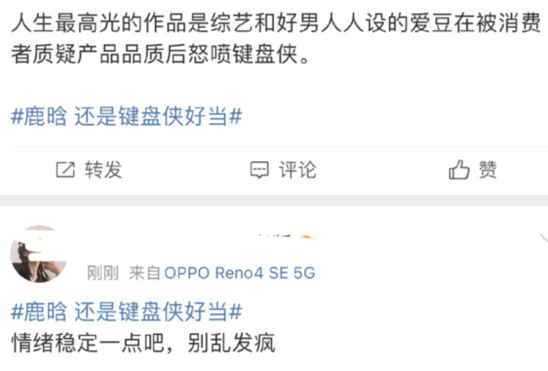 鹿晗的文案,被网友品出了阴阳怪气的味道,虽然粉丝辩解:鹿晗是在怼键盘侠,不要对号入座。