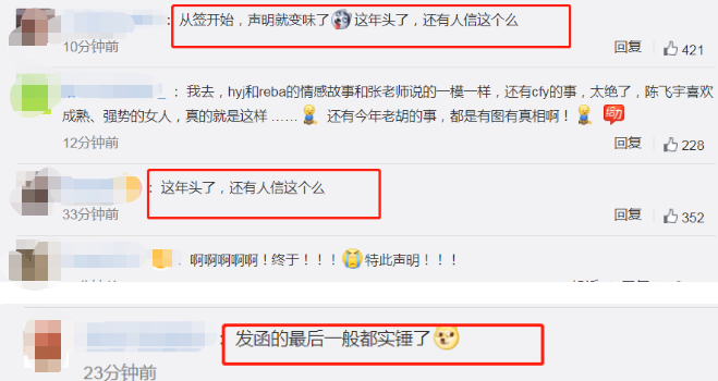 而且这年头明星们的澄清声明,网友们也不怎么买账了。
