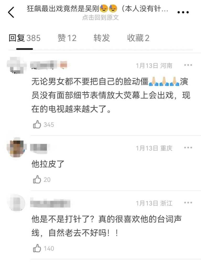 观众纷纷质疑吴刚进行了整容,因为他那充满科技感的脸,瞬间就让人十分出戏。