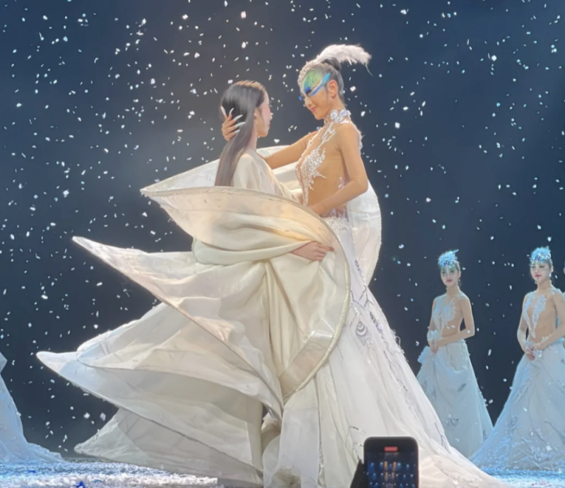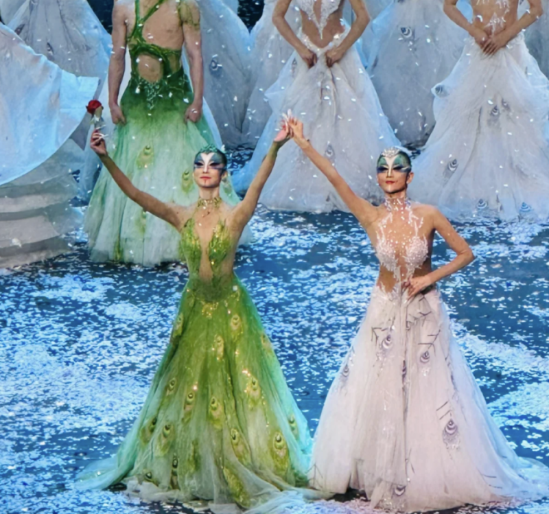 从观众晒出的照片来看,演出当晚,杨丽萍气质一如既往地优雅高贵,不得不感叹杨丽萍的保养功力实属一流,这个年纪还能保持如此优越窈窕的身线,在舞台上表现自如的她宛若化作人形的孔雀精灵,一举一动都是那样地灵动唯美。