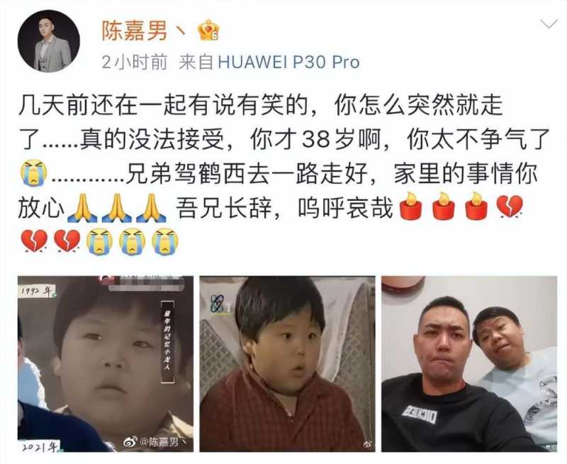 38岁陈辰因病猝死,陈嘉男悼念引热议后道歉,暗示他生前家庭不幸福