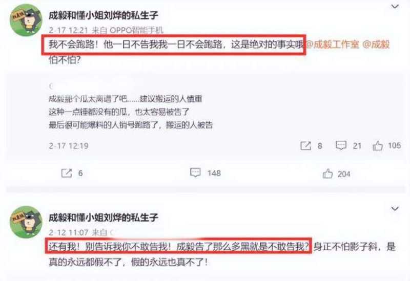 在前几日,就有传闻声称古偶小生成毅疑似私下有私生子,起因是一位ID名为“成毅和懂小姐刘烨的私生子”的网友爆料成毅有私生子,且公开艾特成毅及工作室,还说自己不会跑路,身正不怕影子斜,是真的永远假不了。