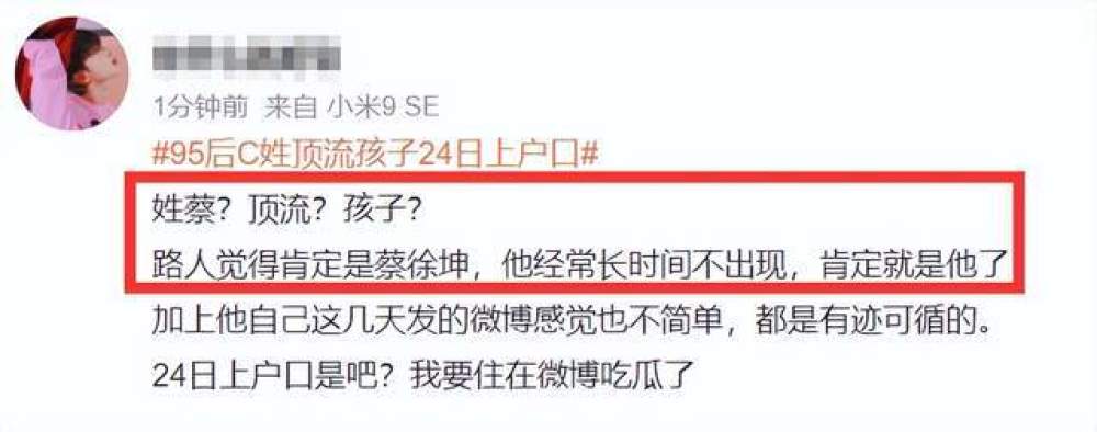 大瓜!曝95后C姓顶流隐婚生子,24日给娃上户口,蔡徐坤无辜躺枪