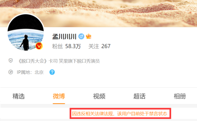 搞笑的是,孟川之前在节目中曾透露,自己除了是笑果的工作人员外,还在微博居委会里边兼职,平日里处理一些违规的帖子,结果自己却被禁言了,也是怪讽刺。