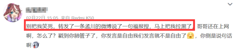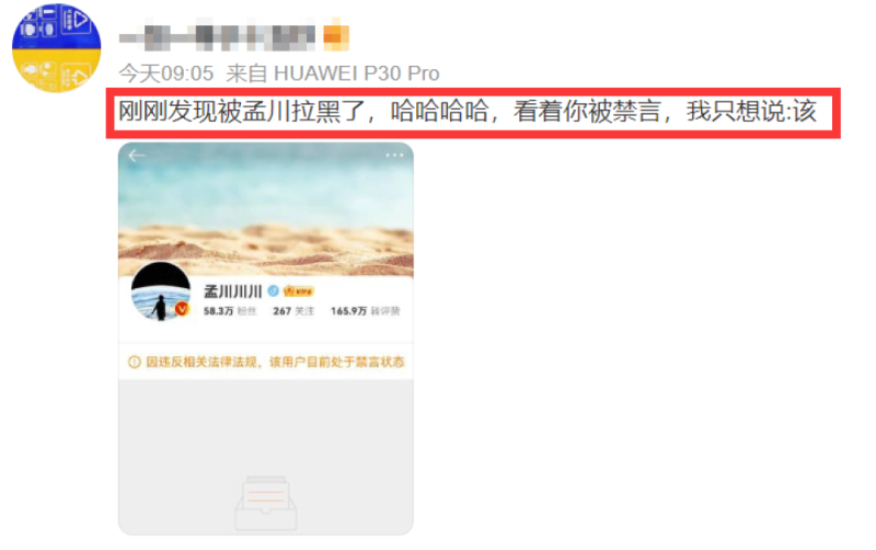 除了空降粉丝群外,孟川还拉黑了不少网友,原因是这些网友发表了一些对孟川不太友好的话,看来孟川被禁言后,也是时刻关注网上的舆论,他很在意大家对他的评论。