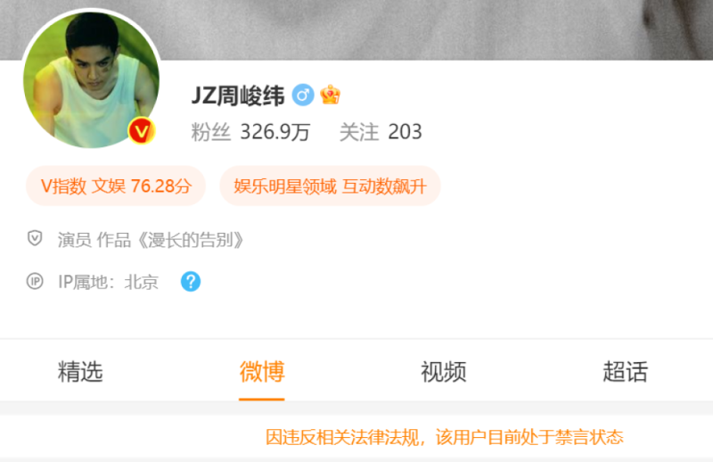 除却孟川之外,当天演员周峻纬也获得了同样的“待遇”,据了解,两人被官方封禁的原因大致相同,都是因为发表了带有煽动性的不当言论。