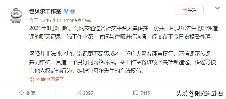 值得一提的是,其中包贝尔在报警并发出声明之后,评论区反而被网友们重提旧事,相比较其他人,他可能也是唯一一位在吴亦凡风波中被造谣但仍然被批的明星了。