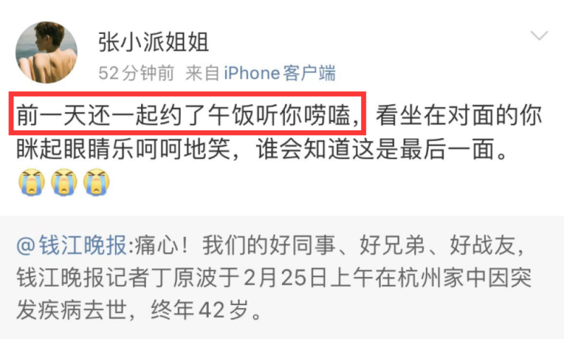 知名媒体人丁原波过劳猝死,年仅42岁,去世前一天还约朋友吃饭