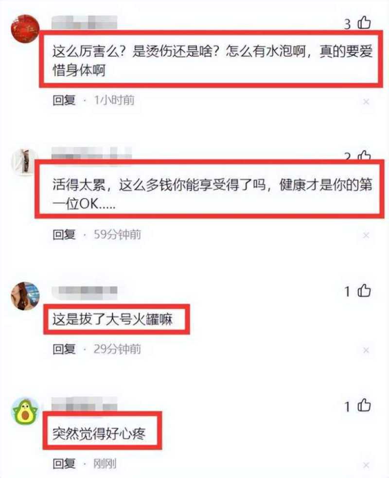 视频中,张兰在自家阿姨的帮衬下练习走路,膝盖的剧痛让其步伐艰难,为了消肿阵痛,张兰的膝盖还注射了止痛药剂,后期还进行了拔罐处理,真空玻璃罐的施压作用下,张兰的两个膝盖顿时鲜血淋漓,即便是这样,张兰依旧表现得相当从容。