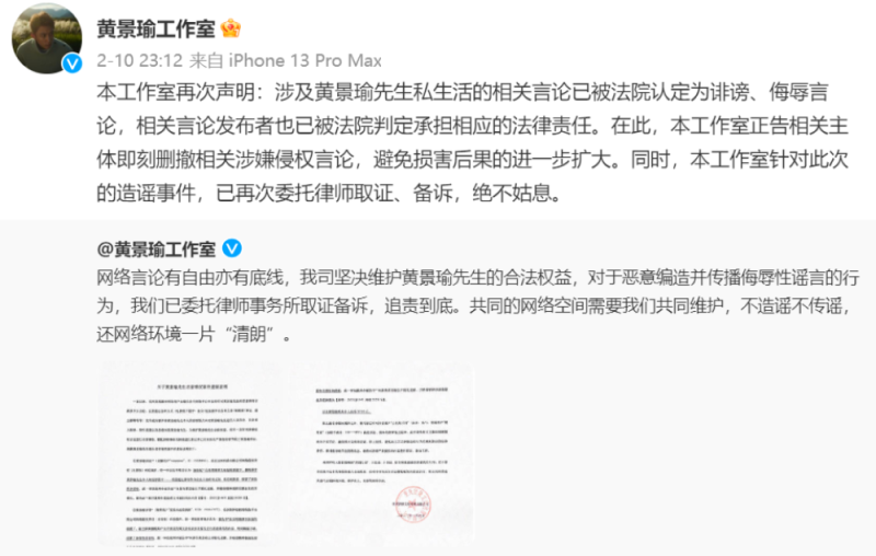 此料一出,立马在外界掀起轩然大波,为了以正视听,热巴工作室随后发布严厉声明怒斥造谣者,并且直接列出了参与造谣的网友ID,黄景瑜工作室也紧跟其后,同样发布声明禁止大家造谣传谣,不过双方声明中都没有明确辟谣两人的恋情。