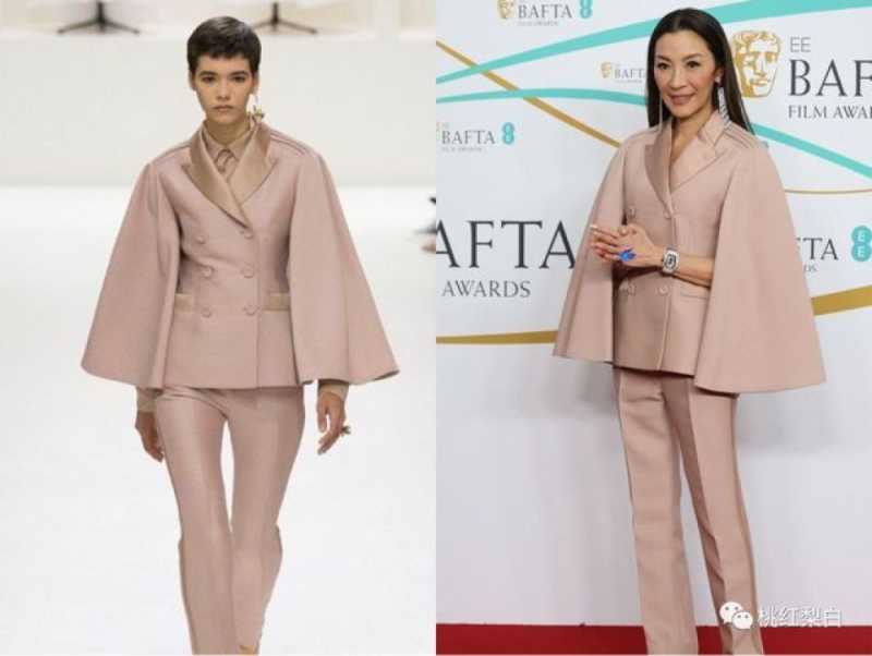 出席第76届英国电影学院奖,选的也是Dior家温柔格调的浅粉色套装,看起来很知性。