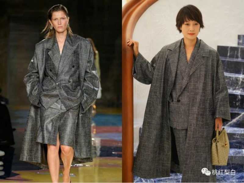 成套的结构感大衣+西服套装的组合,让她看起来一秒变身飒爽女总裁。