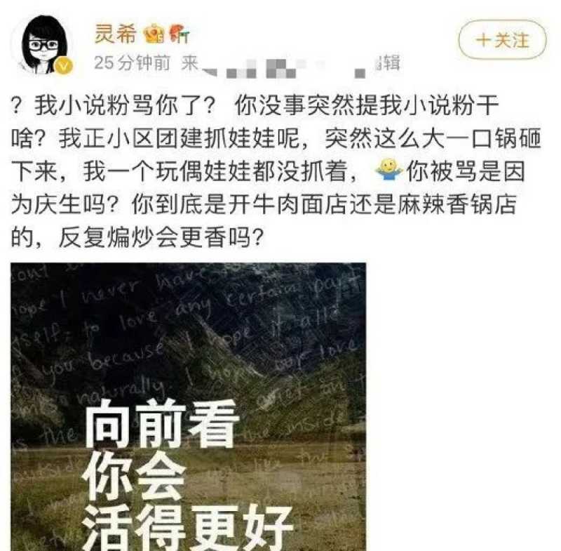 这些话被截图出去自然引发了不少的争论,连原著作者灵希也出来怼她了,
