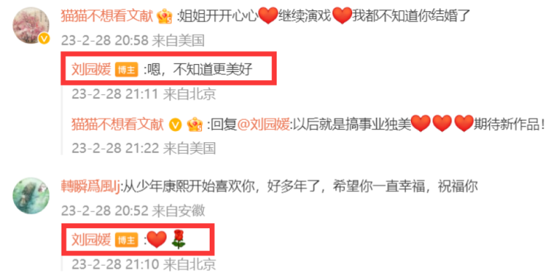 官宣离婚后,刘园媛在评论区还与网友互动,看上去状态挺好的,是非常坚强勇敢地迈出这一步,也获得了很多网友鼓励安慰,也希望未来她与沙桐都好好的,好好打拼事业吧。