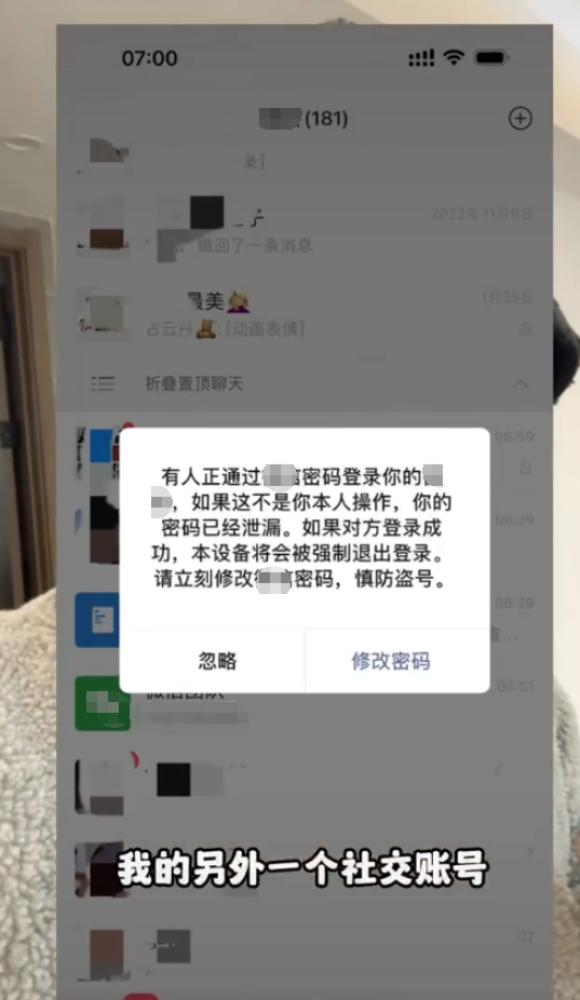 在视频中,徐大宝透露之前有人登录她的视频账号,但是没有登录成功,但在3月1日一早,她的聊天账号显示异地登录,她觉得有些不对劲,毕竟自己的账号密码别人肯定不知道。