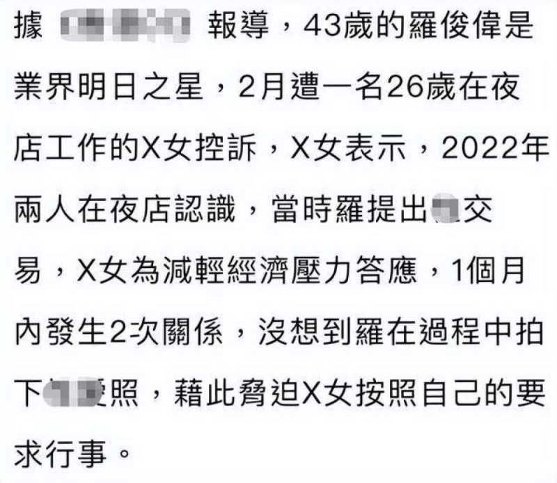 没想到私下得知罗俊伟拥有不良嗜好,拍摄了不少大尺度照片,以此来要挟受害女子听从自己的安排。