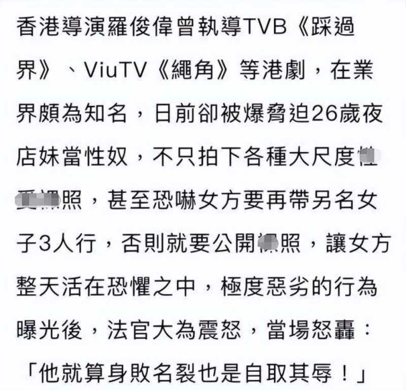 导演罗俊伟被判刑10个月,承认逼迫夜店女郎当性奴,刘德华或被波及