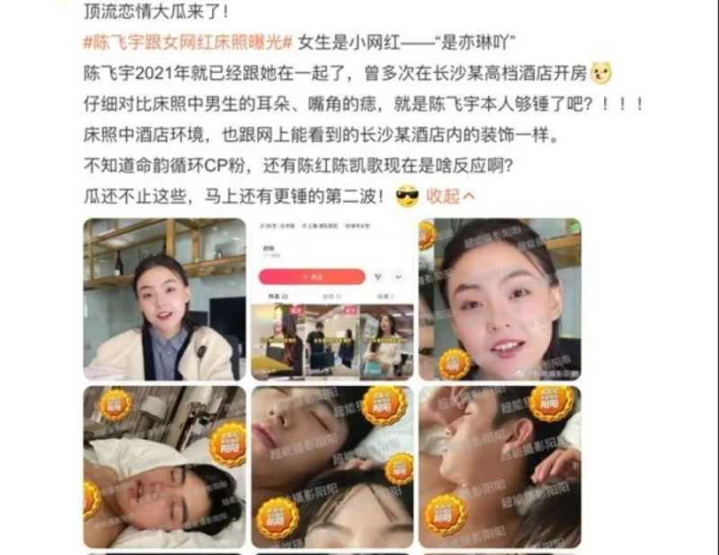 另外,陈飞宇的事情就不用多说了吧,表面上家教很严,实际被曝出和前站姐睡一张床上,纯情人设崩塌。