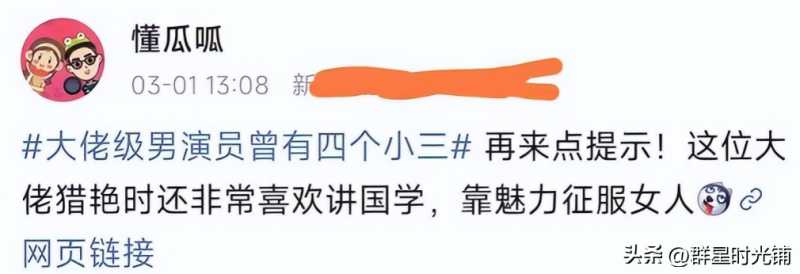 这个瓜跟上面女星为爱做小三的瓜很像,不过这位男演员更厉害,在外有4个小三,还都是著名女星。