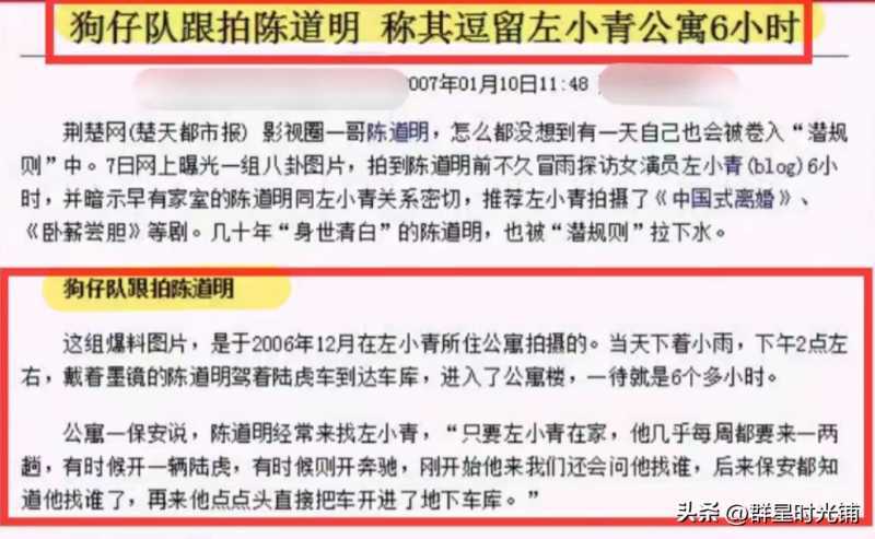当年,陈道明和左小青也传出过绯闻,陈道明还多次被狗仔拍到进出左小青的公寓,两人曾共处一室6小时。
