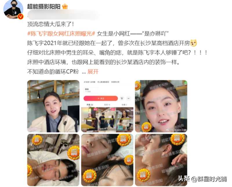 次日,陈飞宇工作室澄清说:两人确实交往过,这些照片都是在交往期间拍的,当时两人都是单身,女方是在和陈飞宇分手后结婚的,因此不存在出轨、男小三的说法。