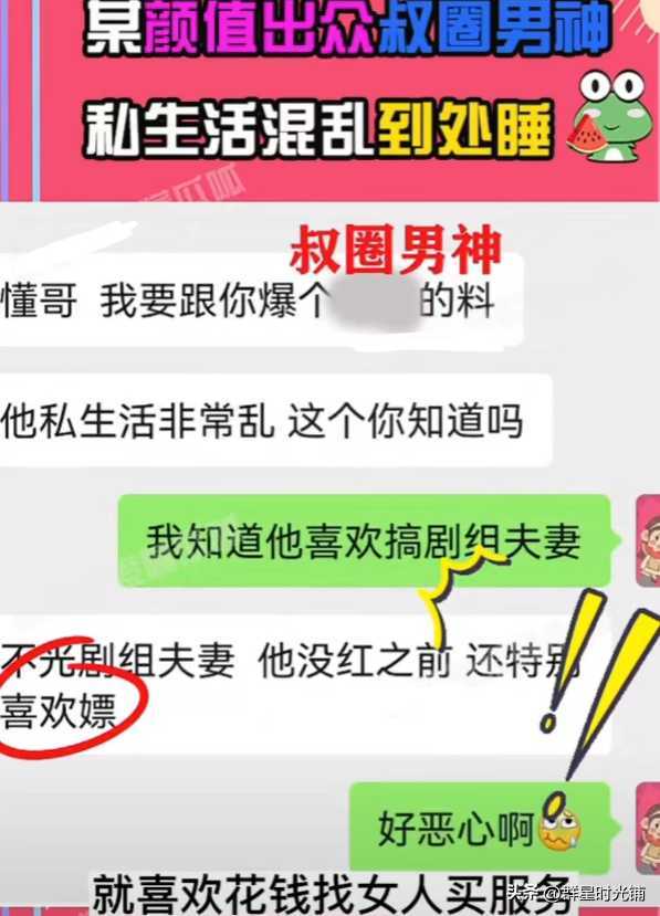 爆出这个瓜的人是懂瓜呱,据说这位中年男神长得帅,一身正气,特别喜欢给自己立爱老婆的好男人人设,没红的时候就喜欢拈花惹草,红了之候或许是怕出事儿,花钱服务的时候找的都是外国人,比如韩国美女、日本姑娘之类的。