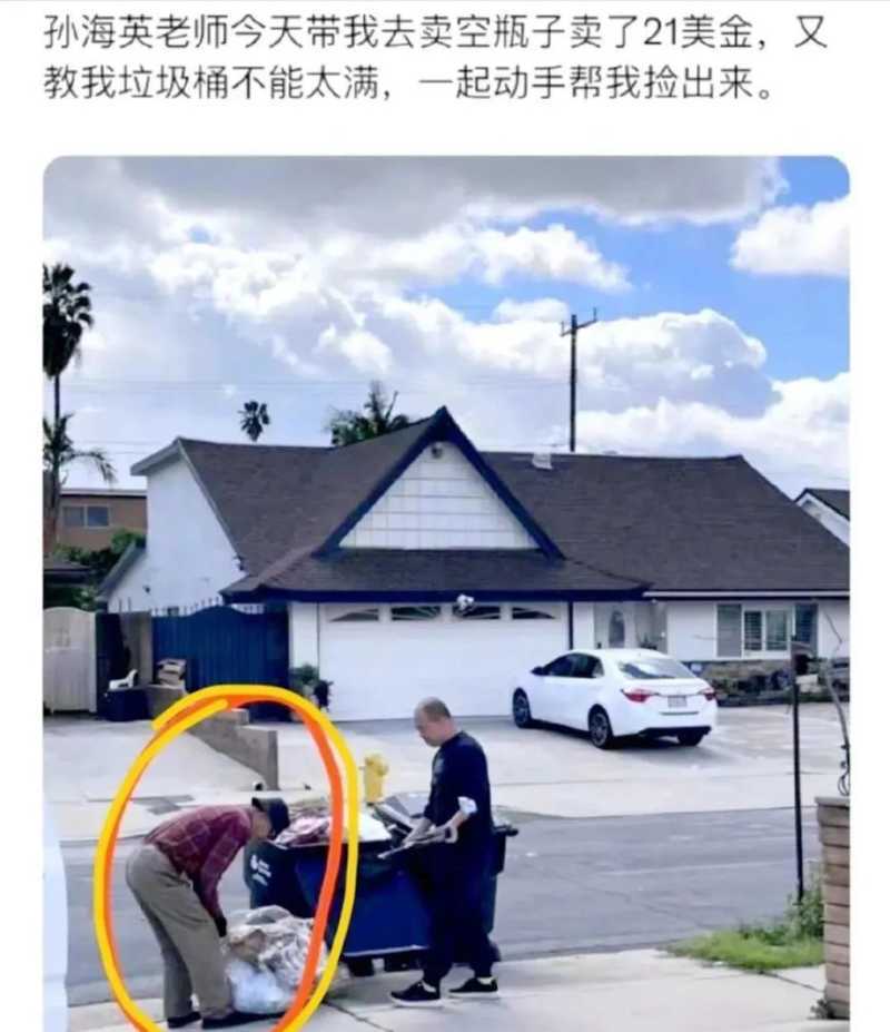 但近日,有网友曝料孙海英在国外带着他去垃圾桶捡瓶子,一天下来捡的瓶子能卖21美元,折合人民币130元。该网友还说孙海英教会了他很多东西,包括如何捡瓶子。