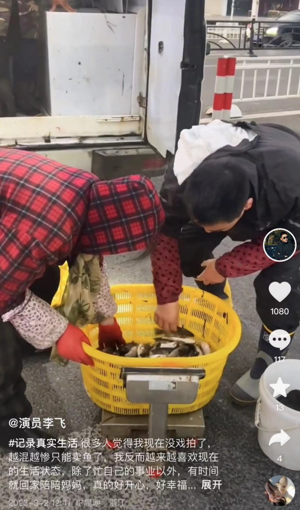 李飞回应,有网友觉得自己无戏可拍摆摊卖鱼很可怜,但他却觉得很充实开心,既可以工作又可以陪伴母亲。