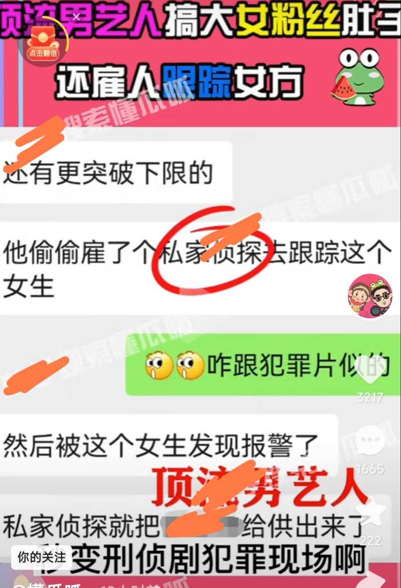 回到男艺人这边,狗仔说这个男艺人更突破下限的地方,是雇用了私家侦探去跟踪这个女生,事情弄得好像一个犯罪电影,结果私人侦探业务不行,被女生察觉到异常,随后女生报警,私家侦探就把男艺人的名字给供了出来,男艺人也因此被警方带走问话,但因为没有达到量刑的标准,所以男艺人才有惊无险得平安出来。
