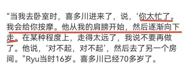受访者表示自己只是受到了轻度侵犯,这种程度其实并不算越界,甚至觉得喜多川的“按摩”,让他感觉像是亲密的家人一样。