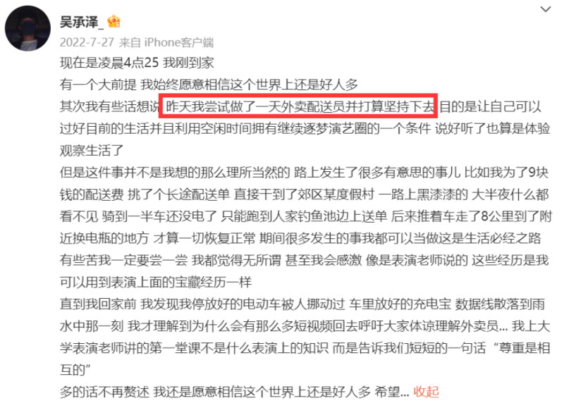 毕竟演艺圈本来就长期面临着“僧多粥少”的局面,只有头部艺人才能享有丰富优渥的资源,中腰部艺人也仅仅能勉强维持生计,剩下一些处于边缘位置的底部艺人的生存处境无疑更艰难,所以在此情况下,很多艺人会选择改行或者兼职,为自己的生活广开财路。由衷希望每一位认真生活的人都能得到命运的善待。