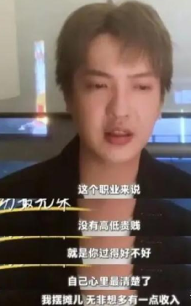他曾在直播中回应自己改行,直言这个职业没有高低贵贱,就是你过得好不好,自己心里最清楚了,自己摆摊无非是想多有一点收入,靠自己的双手赚钱,自食其力。
