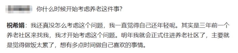 之前也曝光了祝希娟在养老院的照片,条件非常不错,在采访中祝希娟还直言住养老院的另一个原因是觉得做饭太累了,想抽出更多的时间做自己喜欢的事情。