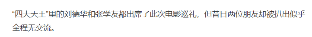 因为在另外的镜头中,刘德华与张学友一直在低声细语,两人脸上还带着笑容,张学友还把身子微微向刘德华这边倾斜,看来两人私交还是相当不错。